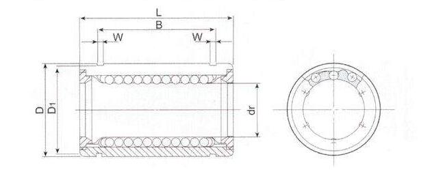 直線軸承是與淬火直線傳動軸配合使用。作無限直線運(yùn)動的系統(tǒng)。負(fù)荷滾珠和淬火傳動軸因?yàn)槭屈c(diǎn)接觸,容許載荷較小,但直線運(yùn)動時,摩擦阻力最小,精度高,運(yùn)動快捷。