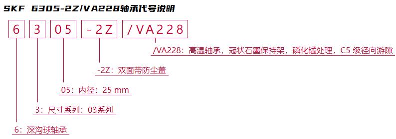 后綴列表:【-2Z:雙面帶防塵蓋】【/VA228:高溫軸承,冠狀石墨保持架,磷化錳處理,C5 級(jí)徑向游隙】。